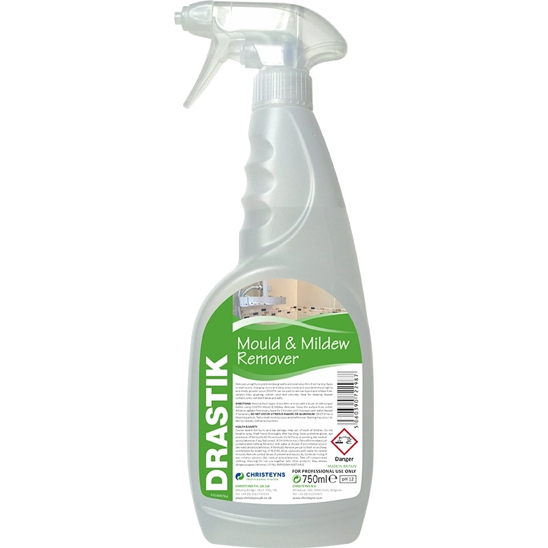 Drastik can be used to remove mould and mildew from ceramic tiles, grouting, rubber, vinyl and concrete.