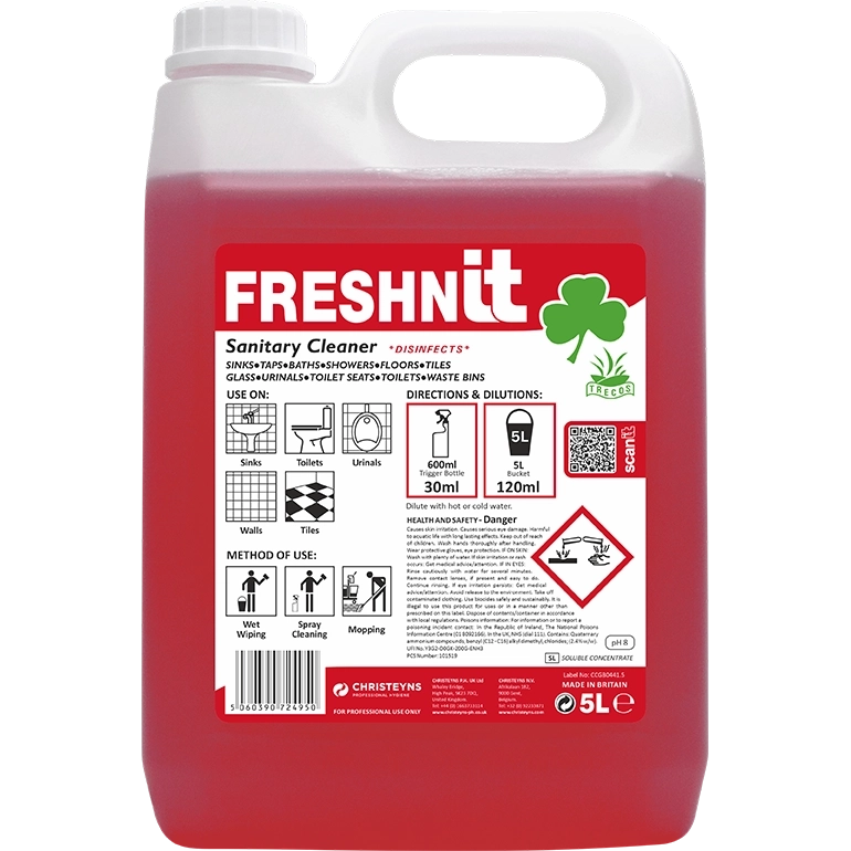 Freshnit is safe to clean and freshen all washroom surfaces, including; sinks, taps, baths, walls, doors, floors, fittings and fixtures, toilets, bidets and urinals.