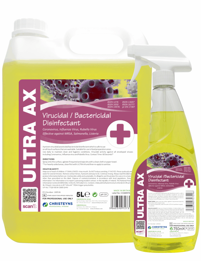 Virucidal activity against all enveloped viruses (including Coronavirus, Influenza virus, Rubella virus and Monkeypox virus) (Passes BS EN 14476:2013+A1:2015/prA2:2016).Kills 99.999% of bacteria – passes BS EN 1276